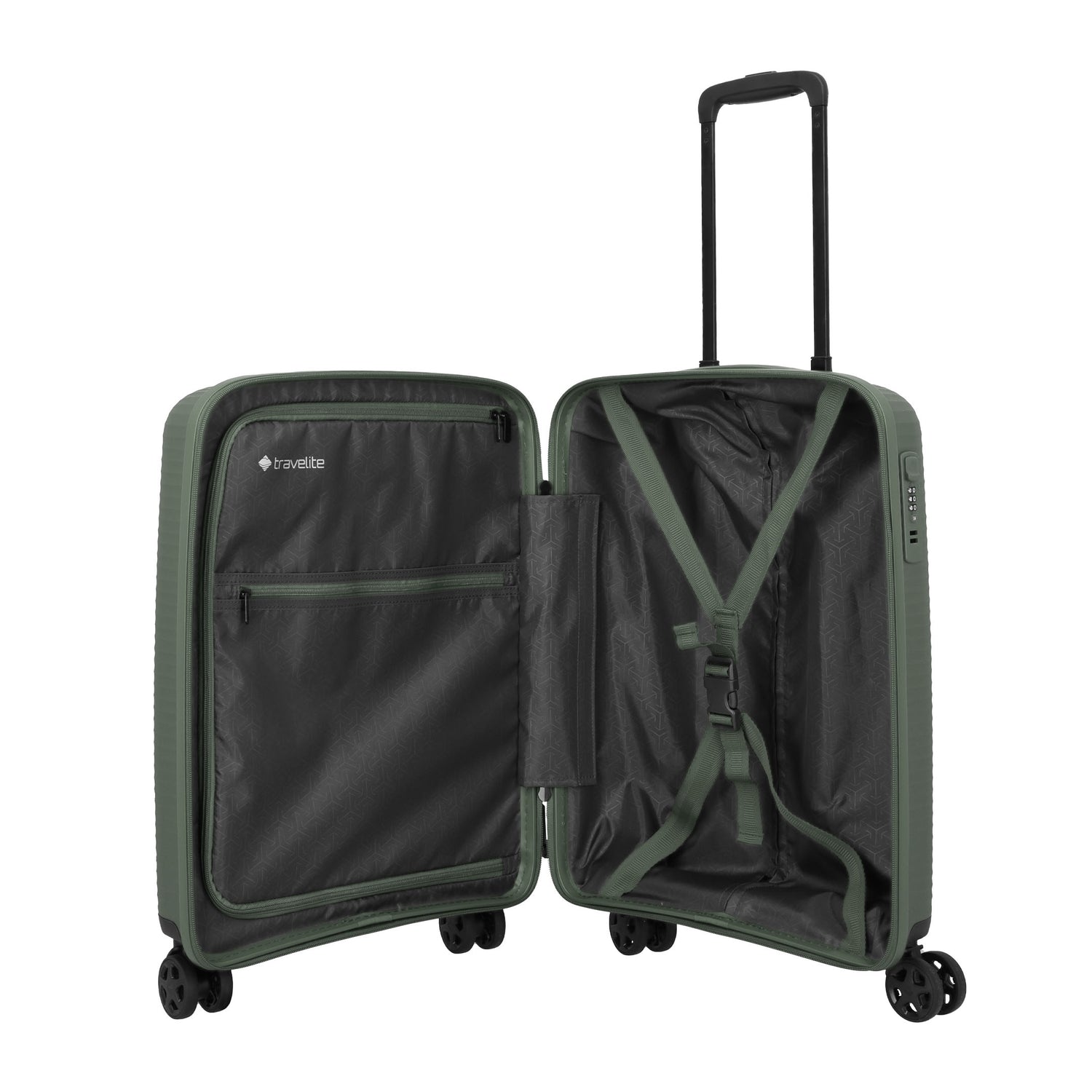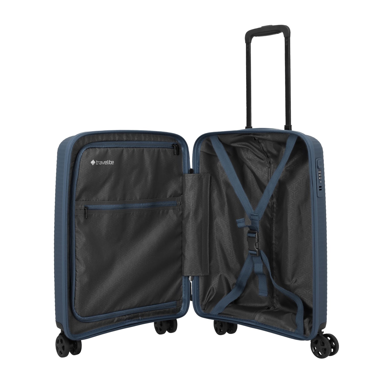 Sikker og slidstærk kabinekuffert med fire hjul fra Travelite.