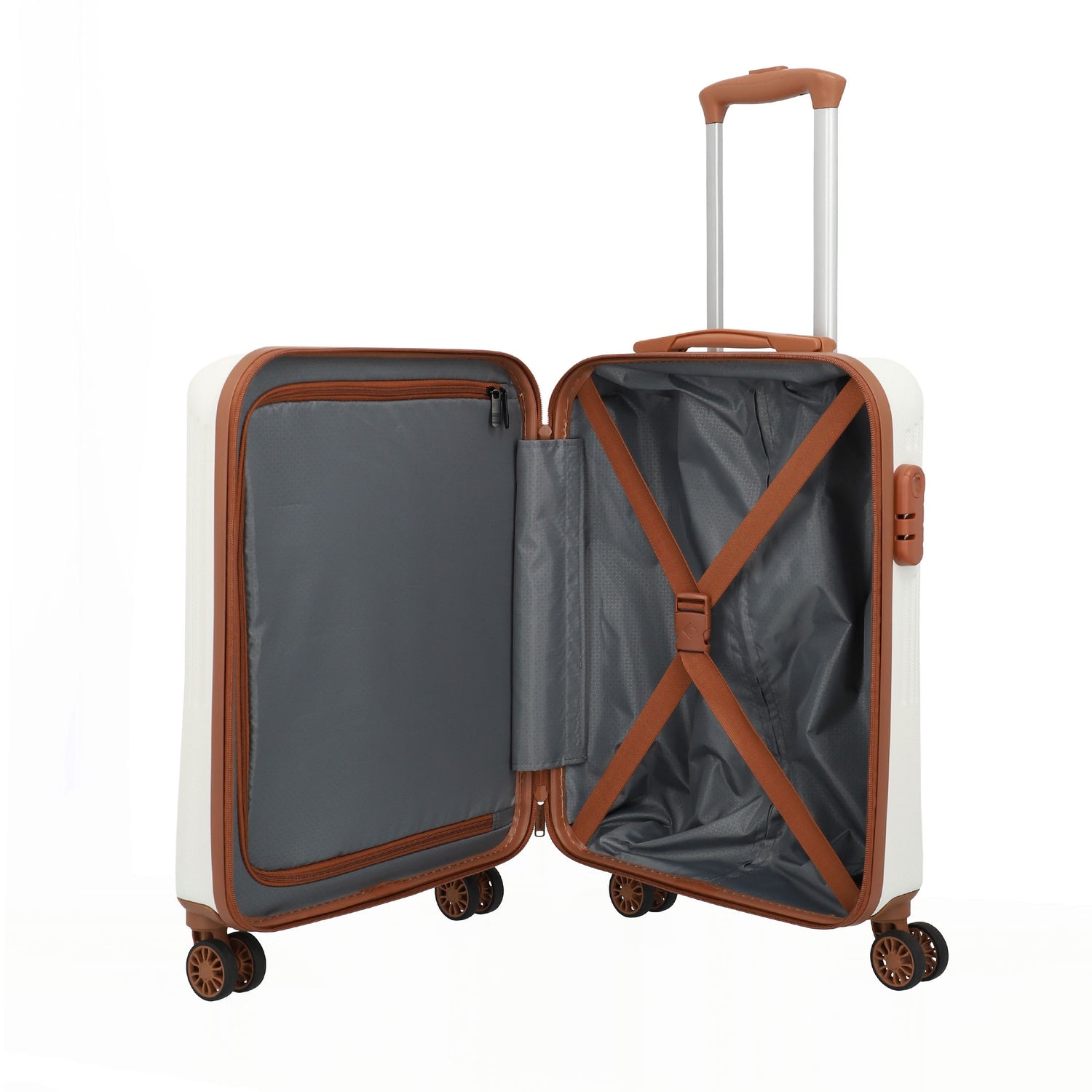Kufferterne er fremstillet i ABS med ridsefast finish og er meget holdbare. Indretningen er rummelig, og de elastiske pakkestropper samt pakkeskillevæggen holder indholdet på plads. Takket være den integrerede TSA-kombinationslås er alle personlige ejendele godt beskyttet. Dobbelthjulene gør kufferten let at manøvrere 180 grader. Hjulbasen er tipsikker og garanterer maksimal stabilitet.