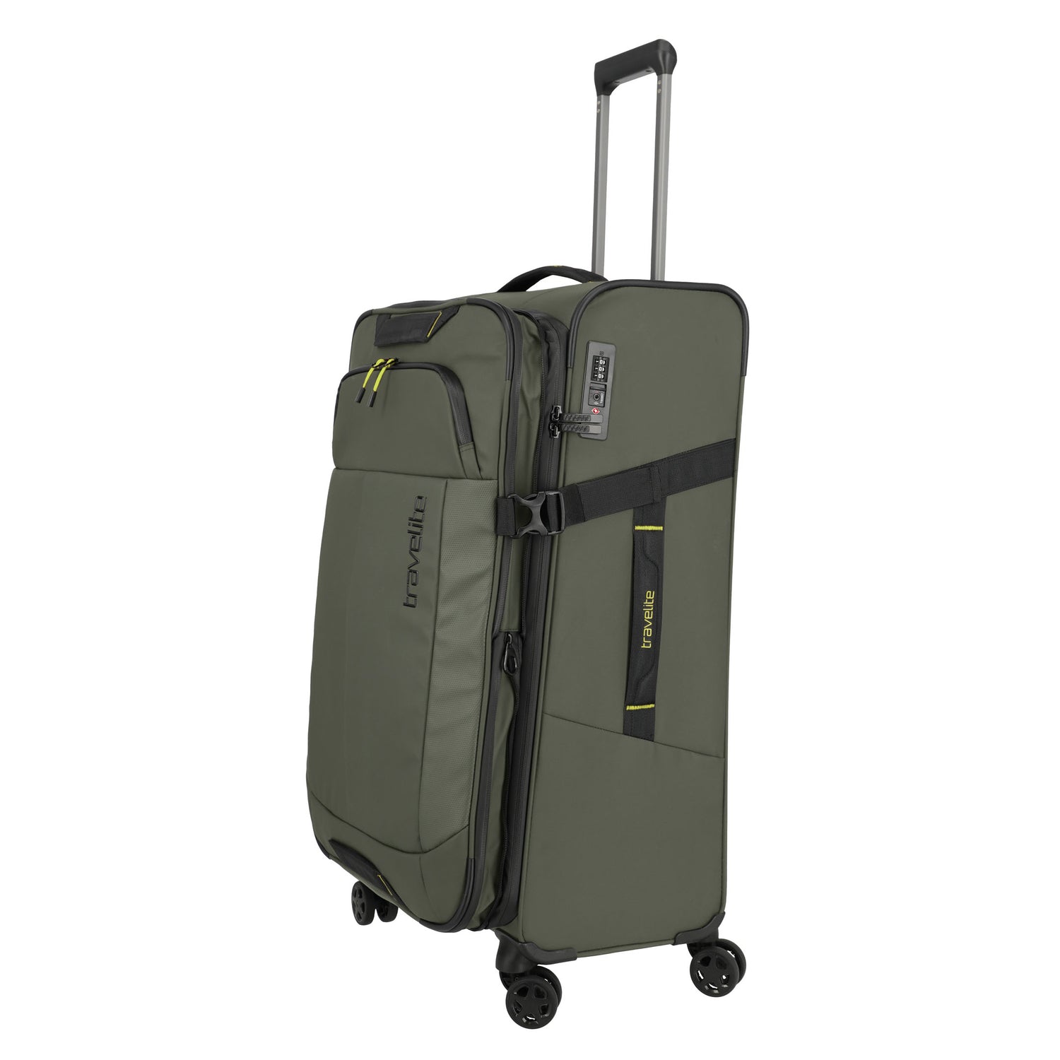 Vattenavvisande och sportig resväska redo för nästa stora äventyr! Travelite Briize i storlek Large erbjuder gott om plats för allt du behöver och vill ha med dig på resan. Interiören är väl genomtänkt och rymlig. Volymen kan dessutom utökas vid behov. Innehållet i väskan hålls stadigt på plats och är överskådligt hela tiden tack vare det högkvalitativa fodret, de elastiska packremmarna och många smarta förvaringsdetaljer. Spännbanden på sidorna gör väskan ännu säkrare.