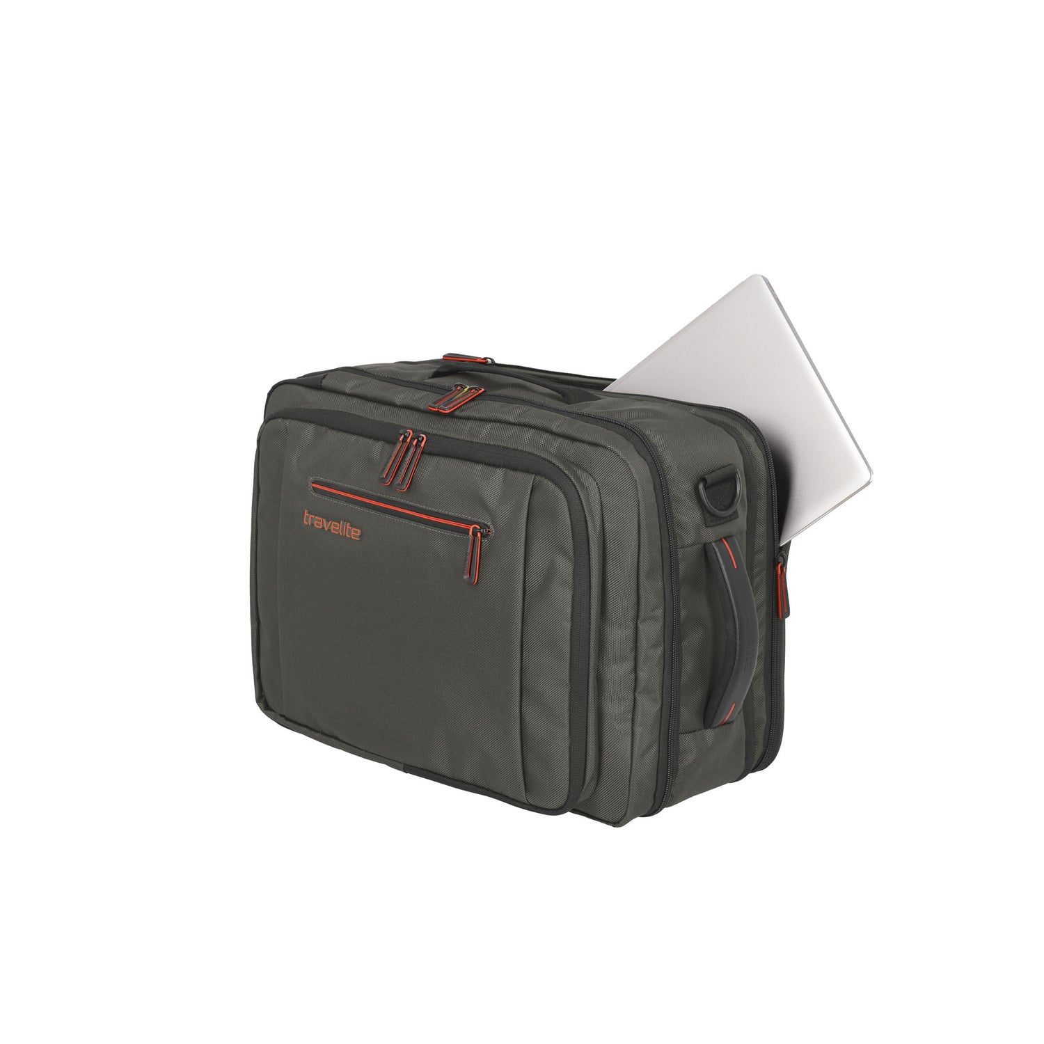 Bekväm, flexibel och superpraktisk ryggsäck! Den här väskan i Travelites Crosslite-serie är ryggsäck, arbetsväska och kabinväska i ett. Omvandlas snabbt och enkelt från ryggsäck till axelväska, beroende på behov. I det rymliga huvudfacket får du plats med kläder för en eller två övernattningar. Interiören är imponerande med sin smarta layout och praktiska funktioner. Ytterfacken underlättar organiseringen och invändigt finns även ett vadderat fack för en laptop på upp till 15,6". Trolleyband på baksidan.
