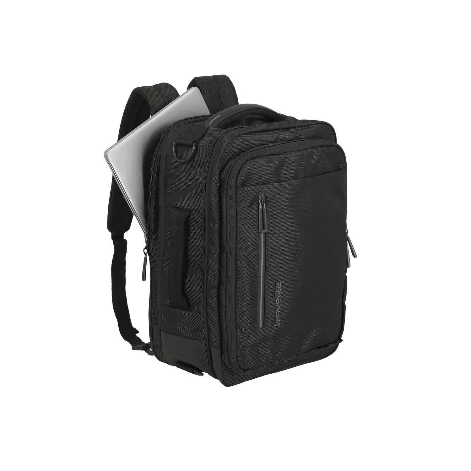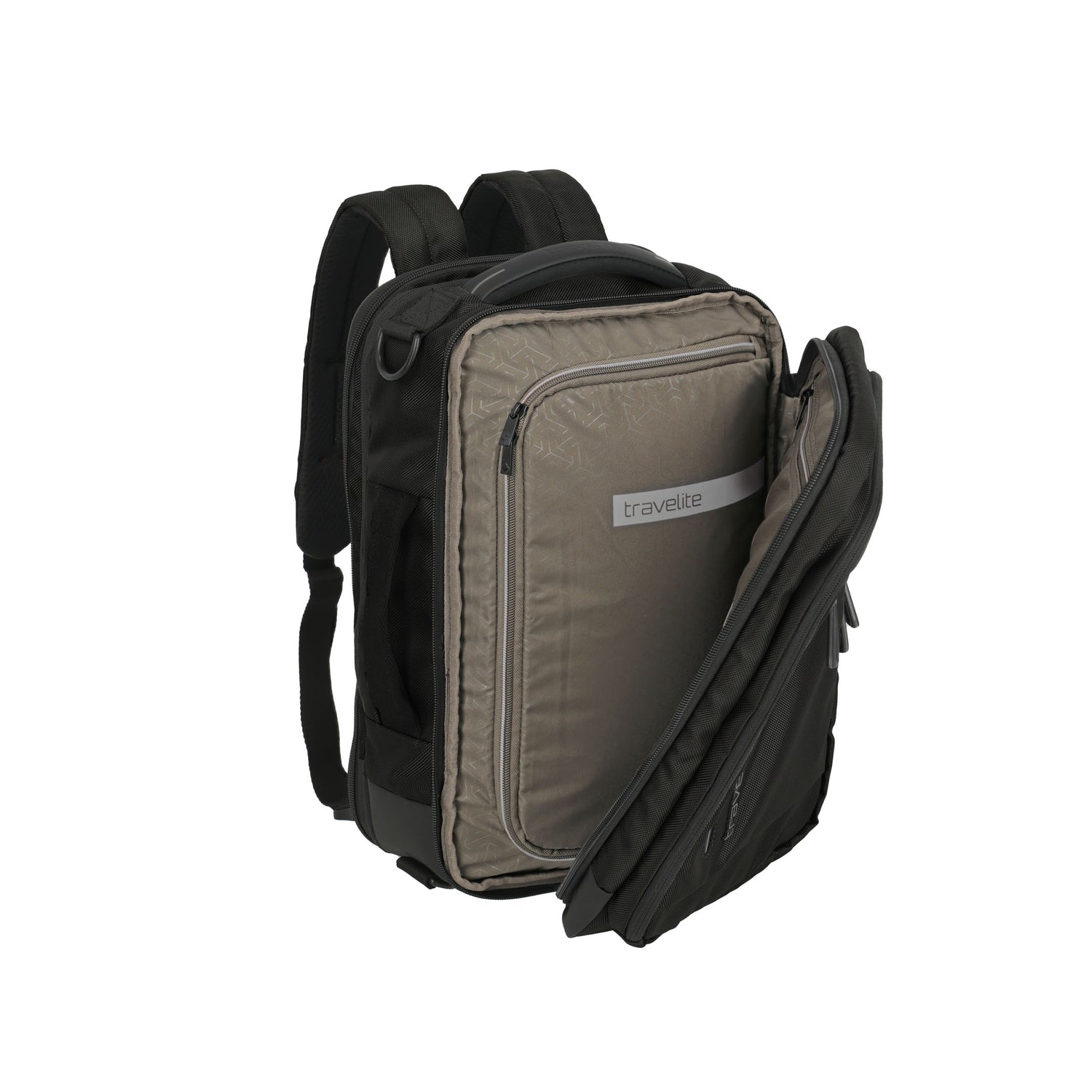 Smidig, flexibel och superpraktisk ryggsäck! Den här väskan i Travelites Crosslite-serie är ryggsäck, arbetsväska och kabinväska i ett. Tillåten som handbagage hos de flesta flygbolag. Omvandlas snabbt och enkelt från ryggsäck till axelväska, beroende på behov. I det rymliga huvudfacket får du plats med kläder för en kortare resa. Interiören är imponerande med sin smarta layout och praktiska funktioner. Ytterfacken underlättar organiseringen och invändigt finns även ett vadderat fack för en laptop på upp till 15,6". Trolleyband på baksidan.