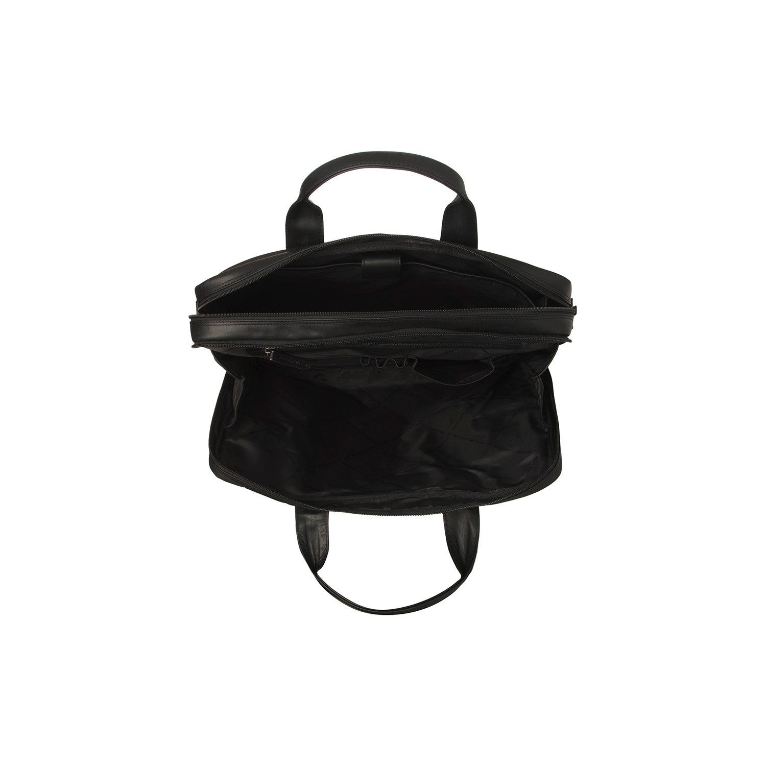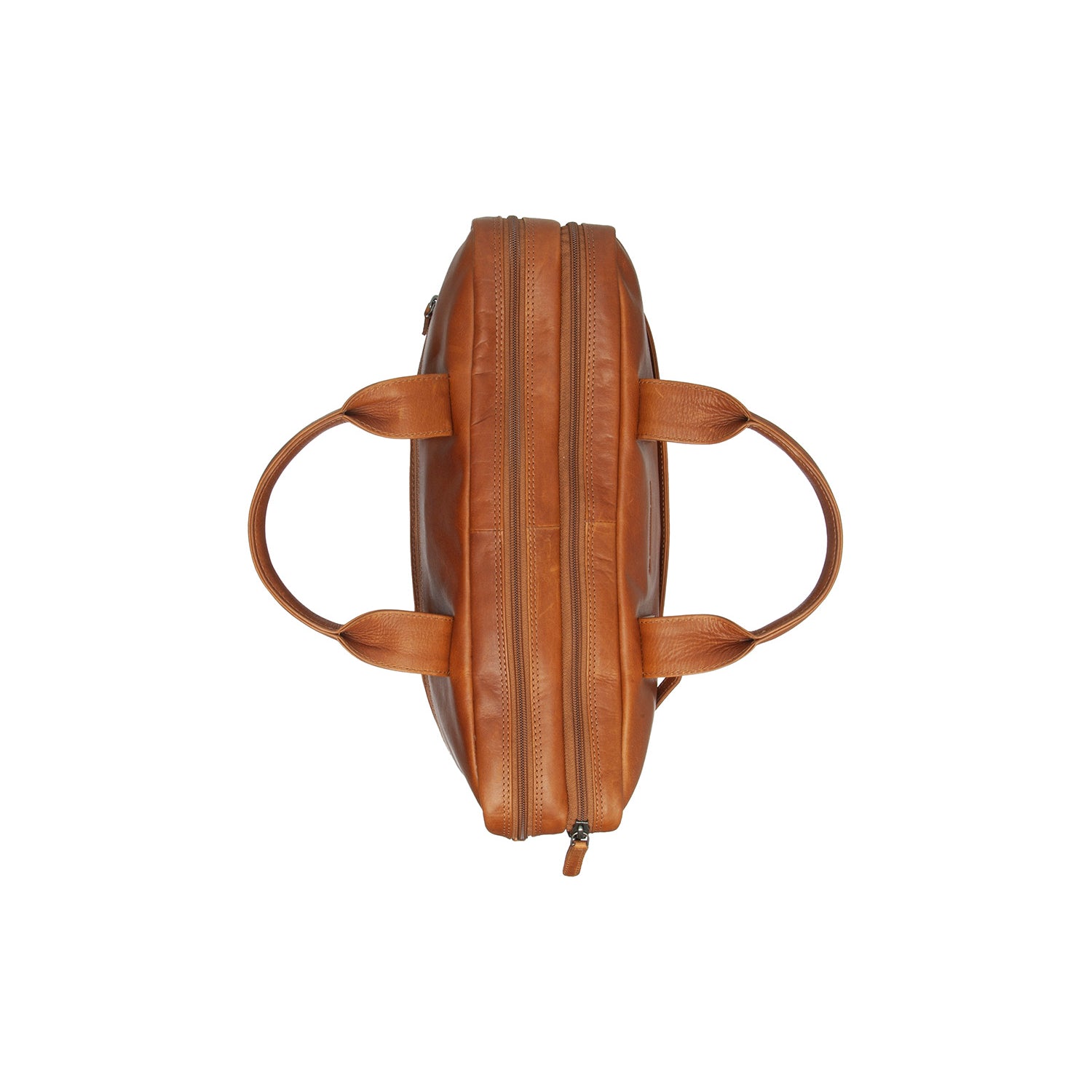 Klassisk og rummelig computertaske i læder med to separate hovedrum.