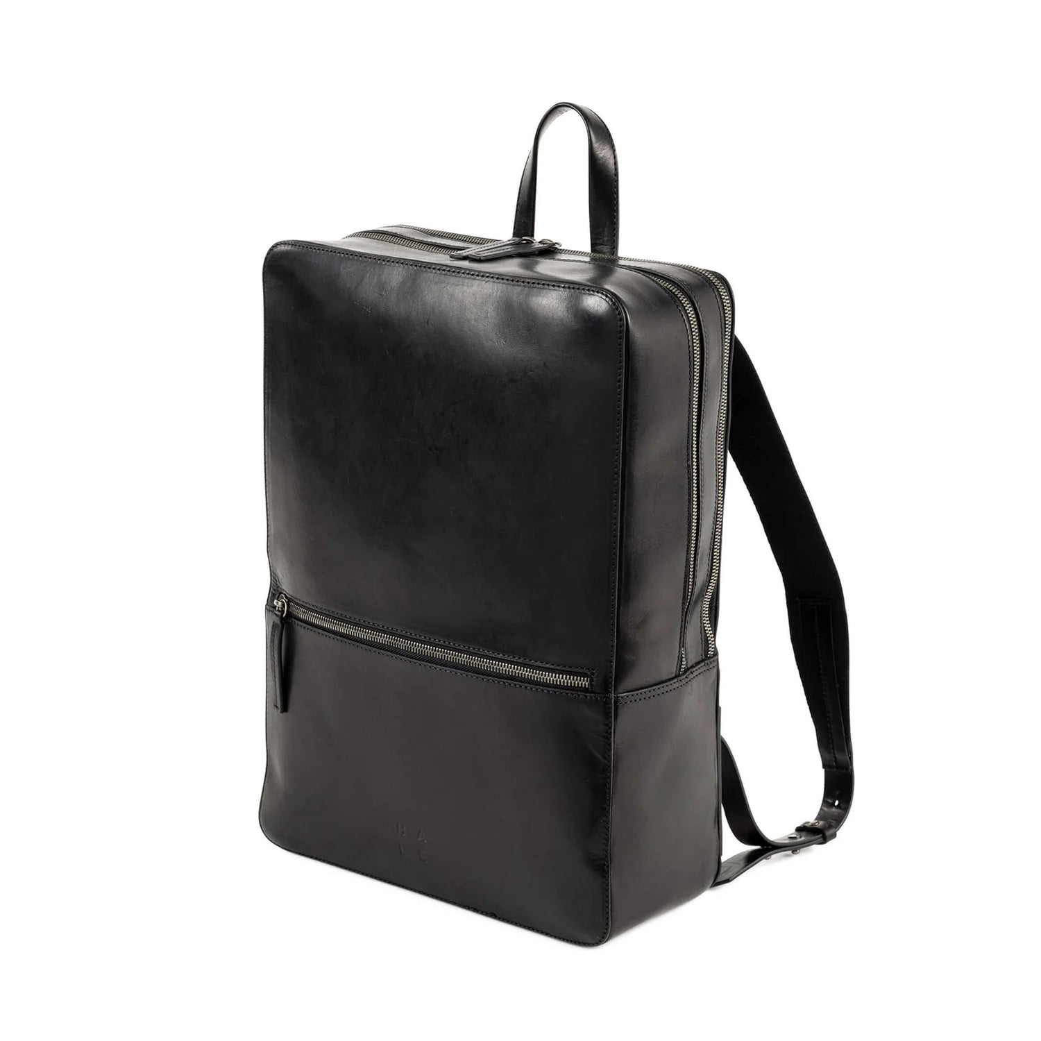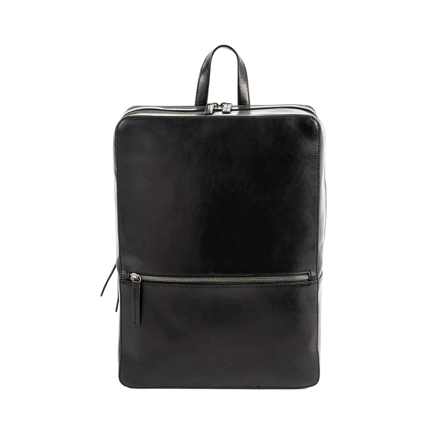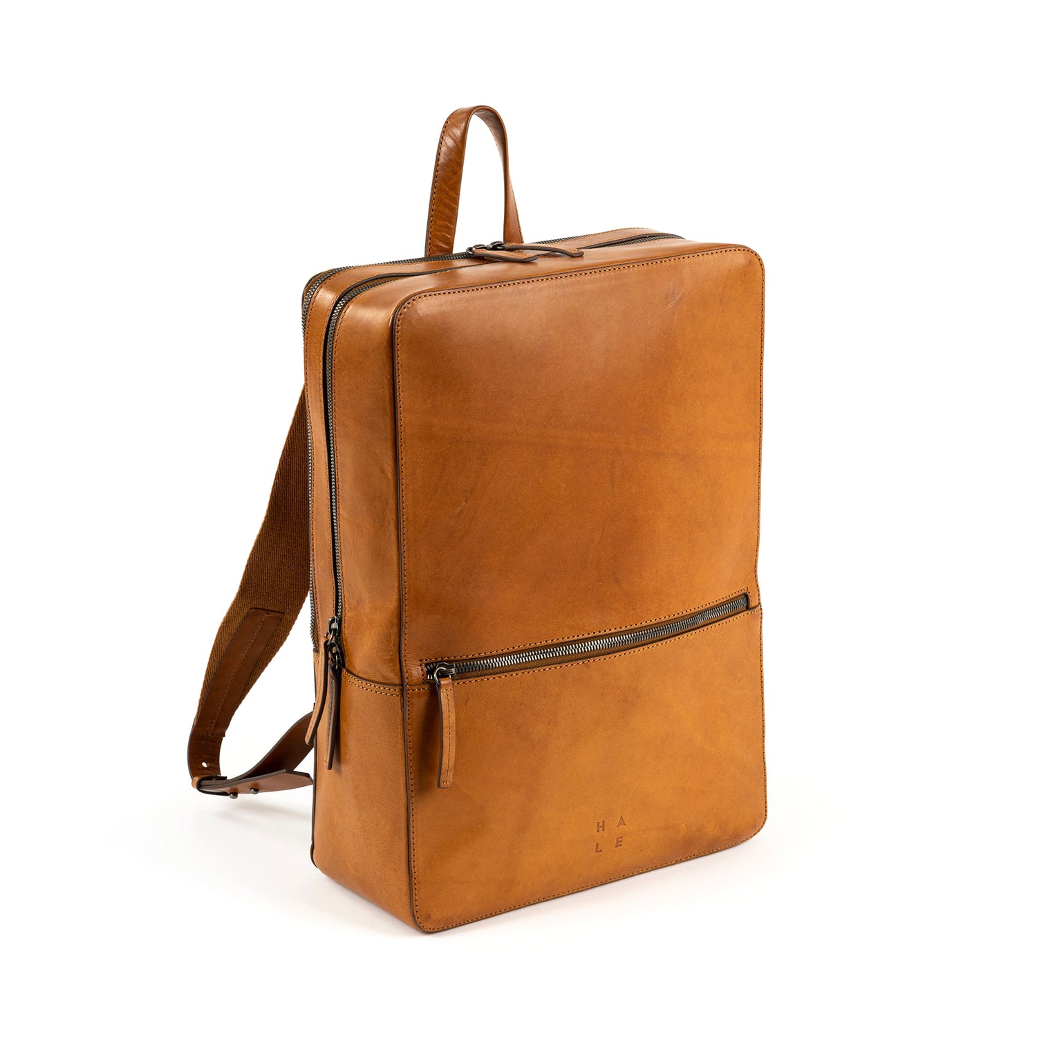 Stilren, slank og rummelig læderrygsæk fra Halland Leather.