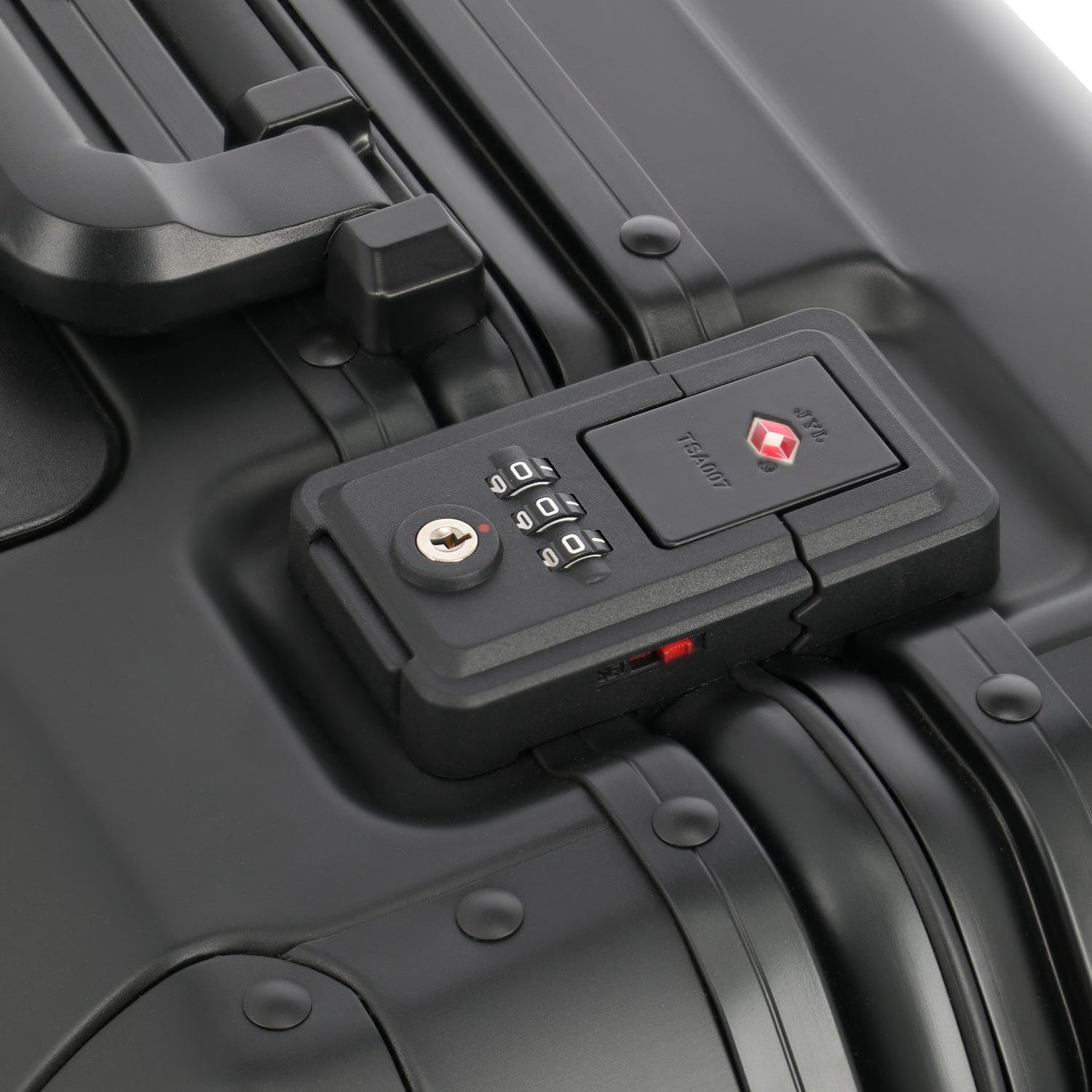 Takket være den integrerede TSA-kombinationslås er alle personlige ejendele godt beskyttet. Dobbelt hjul gør kufferten let at manøvrere i 180 grader.