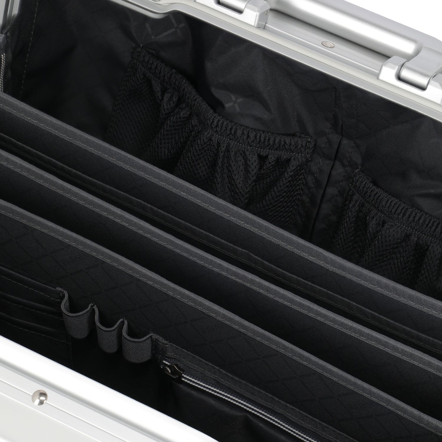 Elegant pilottaske i aluminium, perfekt til forretningsrejser.