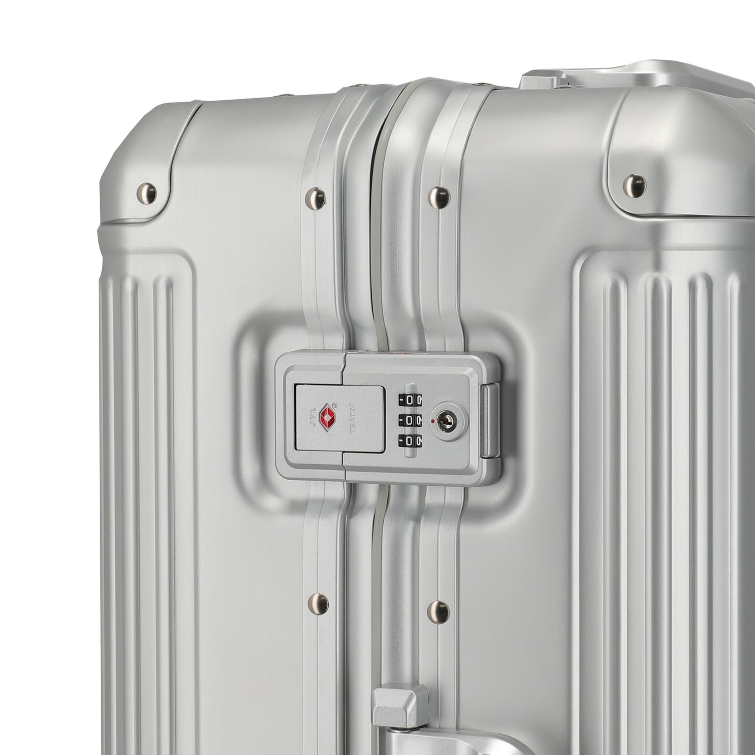 Elegant kuffert i aluminium, klar til næste rejse uanset længde.