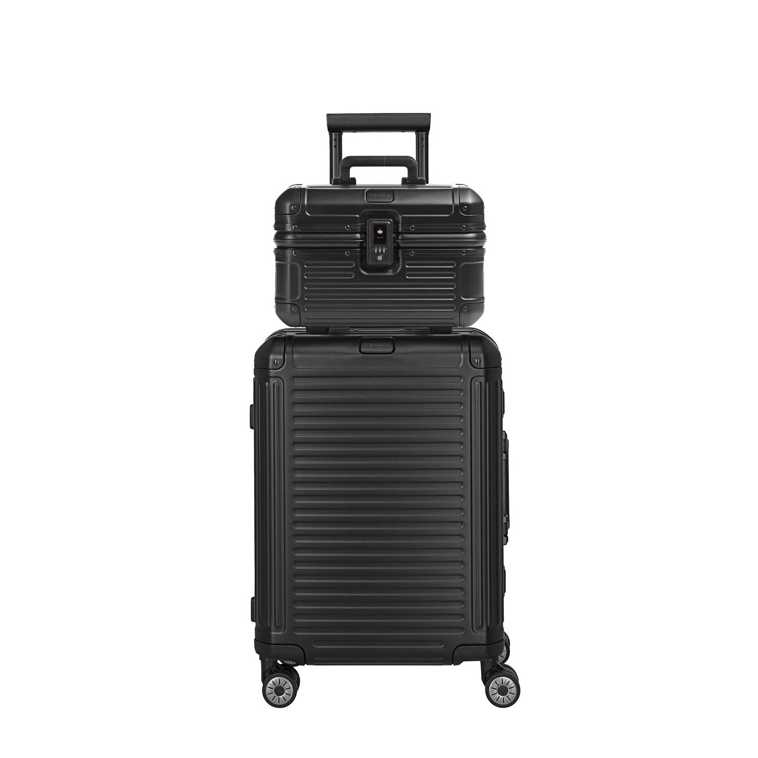 Et eksklusivt rejsesæt i aluminium – maksimal holdbarhed, smart organisering og tidløst design i perfekt kombination. Oplev et premium rejsesæt til dig, der ønsker at rejse med både stil og struktur. Kombinationen af Travelite Next Beauty Case og Travelite Next Trolley Small giver dig et komplet, stødresistent og elegant bagagesæt i høj kvalitet aluminium. Det rene design, det førsteklasses håndværk og det robuste materiale gør dette kuffertsæt til en pålidelig rejsepartner – både på forretningsrejser og weekendture. Aluminiumets naturlige patina betyder desuden, at hver kuffert bliver unik – hver ridse bliver en del af din personlige rejsehistorie.
