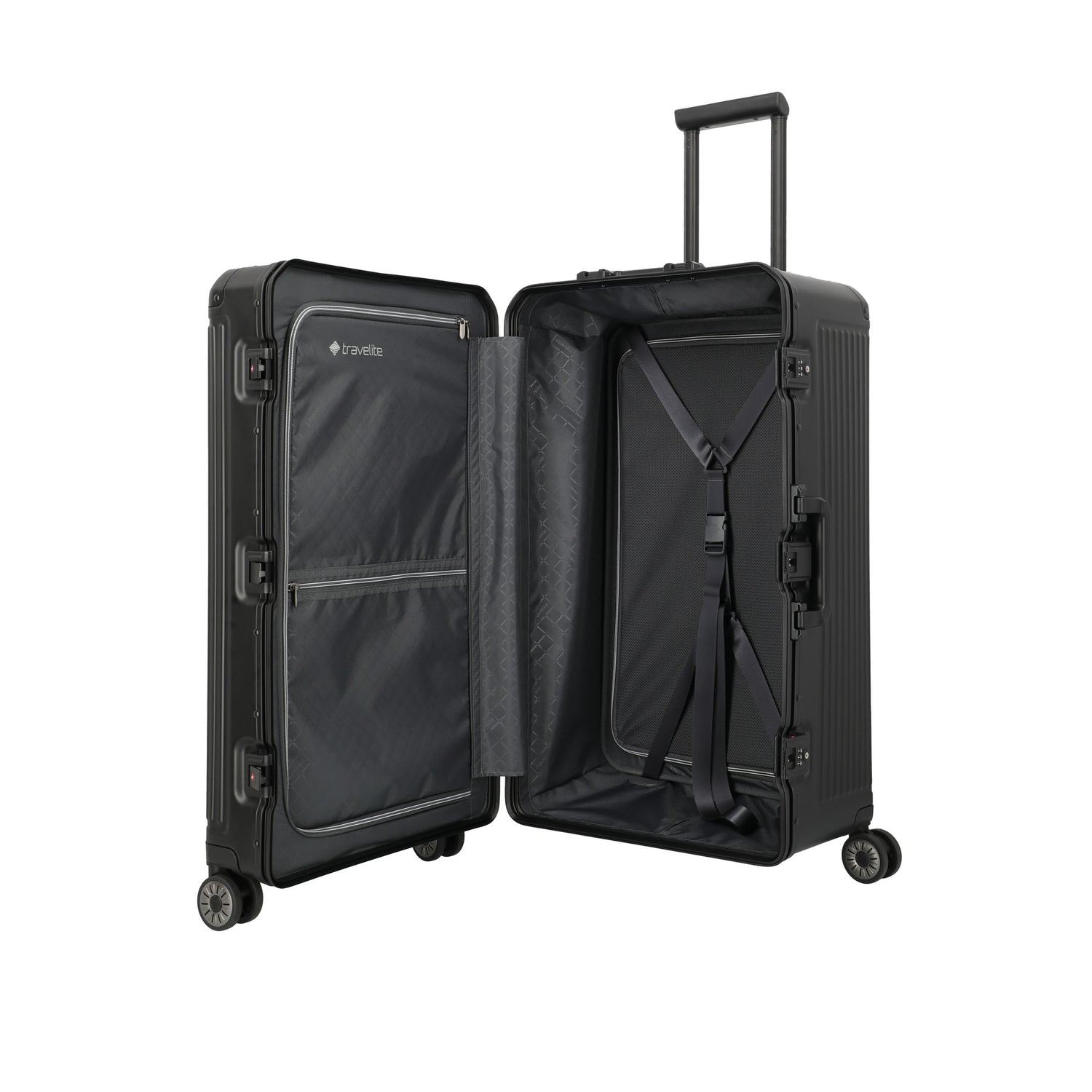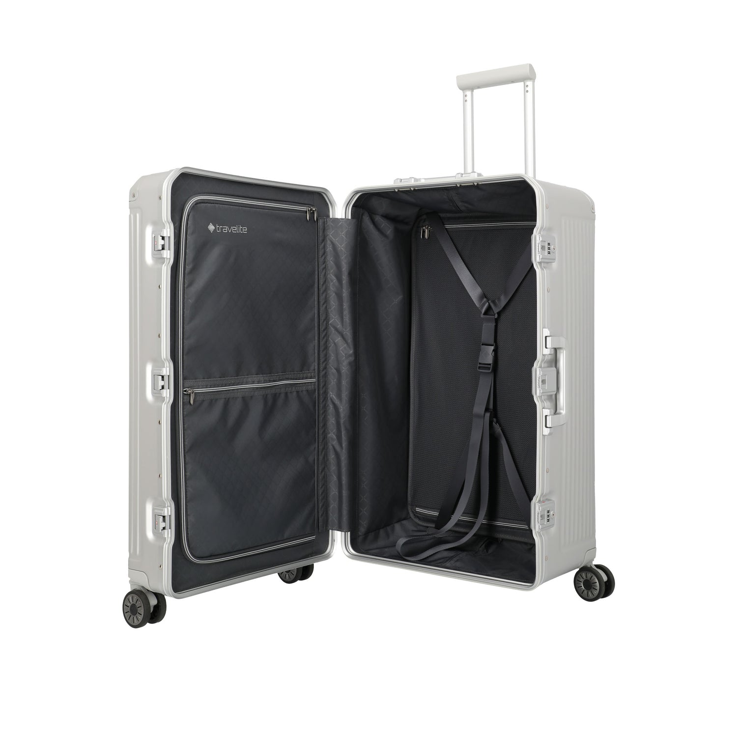 Særlige rejser kræver specialbagage! Travelite Next Trunk er en praktisk kuffert i slidstærkt aluminium. Med det rummelige format kan du sikkert opbevare selv voluminøse genstande som skistøvler eller kameratudstyr. Fire dobbelthjul sikrer maksimal stabilitet og rejsekomfort. Aluminiumet giver desuden kufferten en unik patina ved hver rejse.