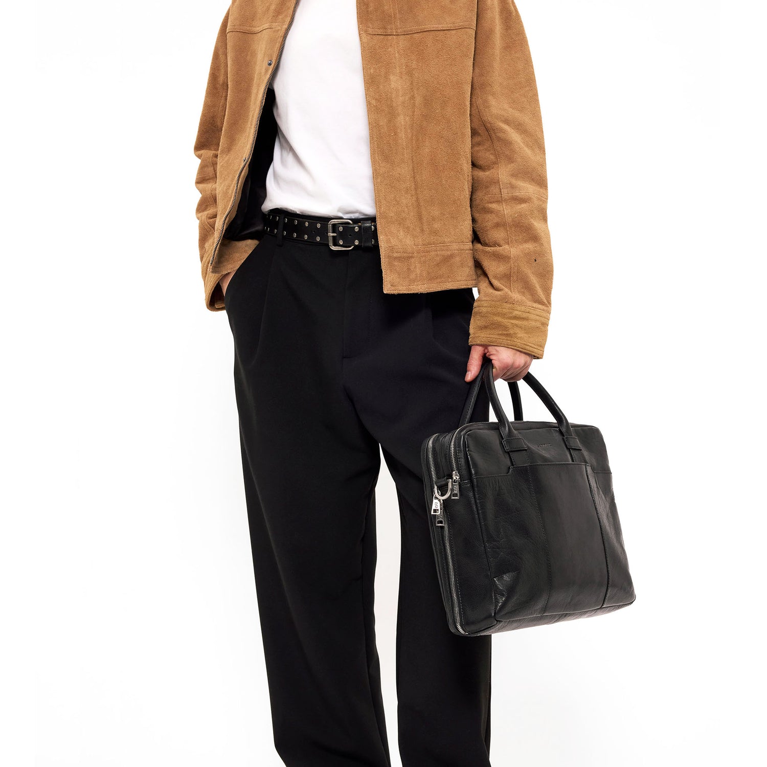 Rummelig computertaske fra Saddler. Vadstena er en computertaske i topkvalitet, der er perfekt til arbejde eller skole. Tasken har et computerrum med plads til en 15" bærbar og stiklomme i den anden. Computertasken har en skulderrem, der er justerbar og aftagelig. Håndtag i læder og på bagsiden er der en læderrem, der gør, at du nemt kan sætte computertasken fast på toppen af en rulletaske, når du er på farten. Lomme med skjult magnetisk knap foran.