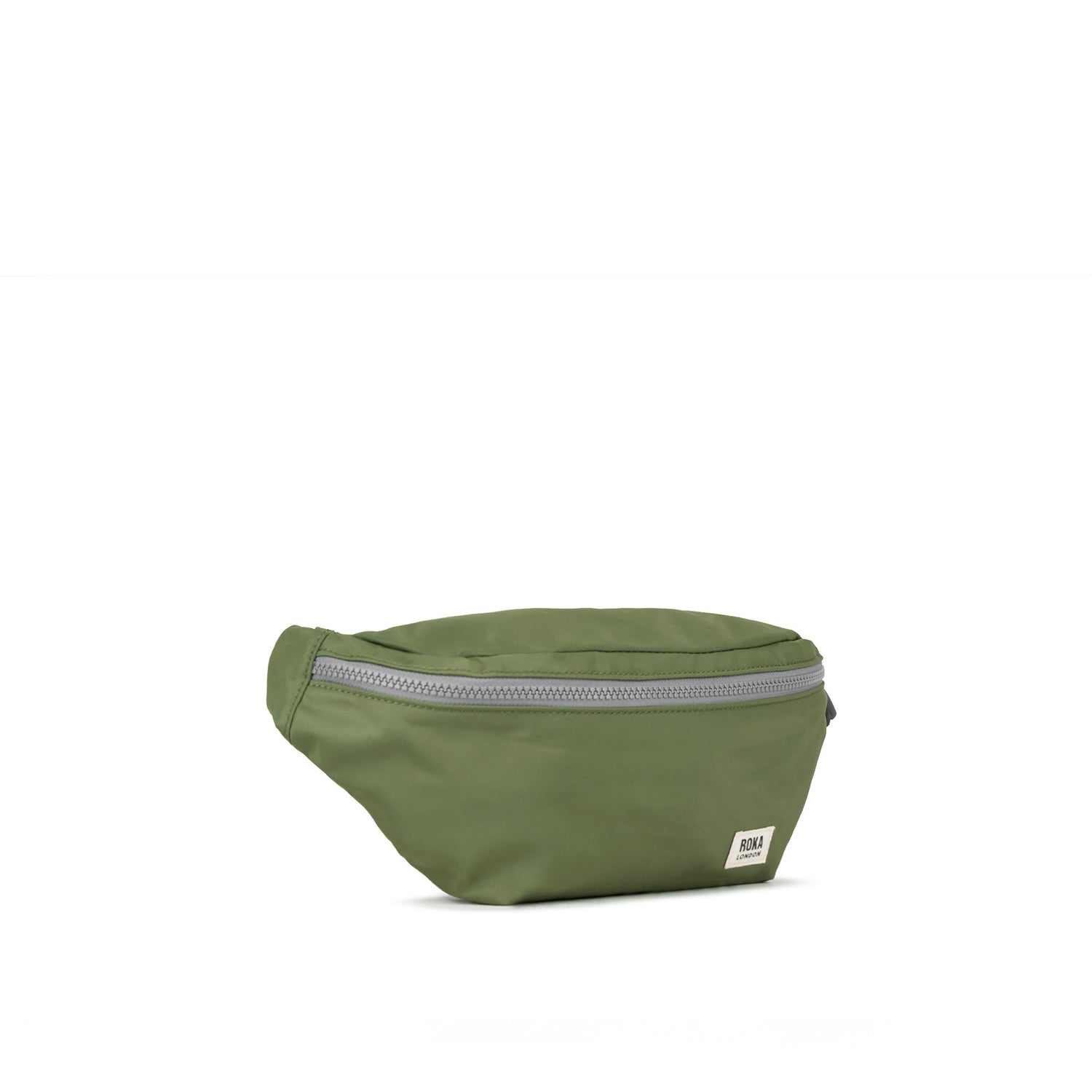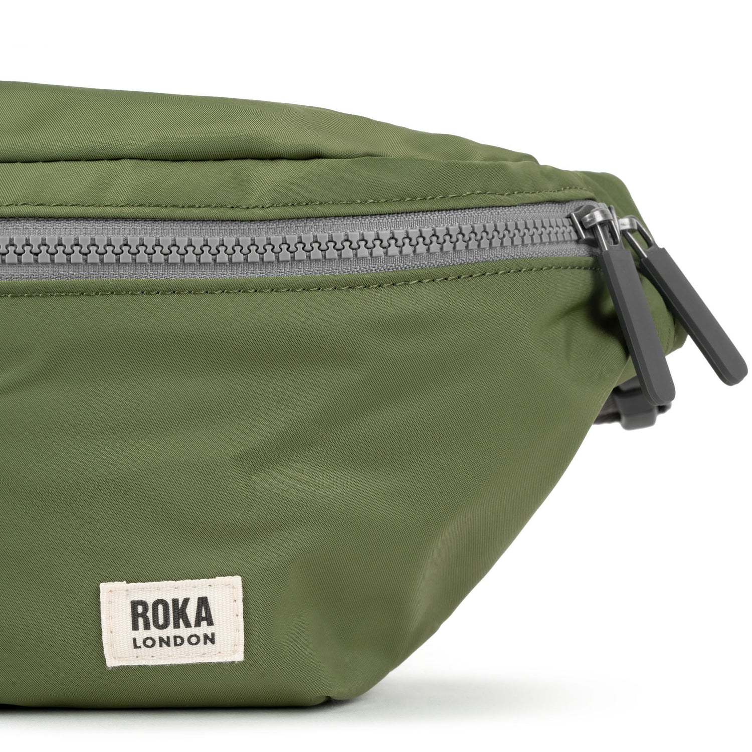 Jubilee Waist Bag är tillverkad i hållbar nylon som framställs av återvunna flaskor. Materialet (rPET) är slitstarkt, väderbeständigt och vattenavvisande. Det unika nylontyget från ROKA London har en slät och glänsande yta. Dubbla blixtlåsöppningar som gör det lätt att komma åt dina tillhörigheter. Den justerbara remmen låter dig bära väskan på ditt sätt.